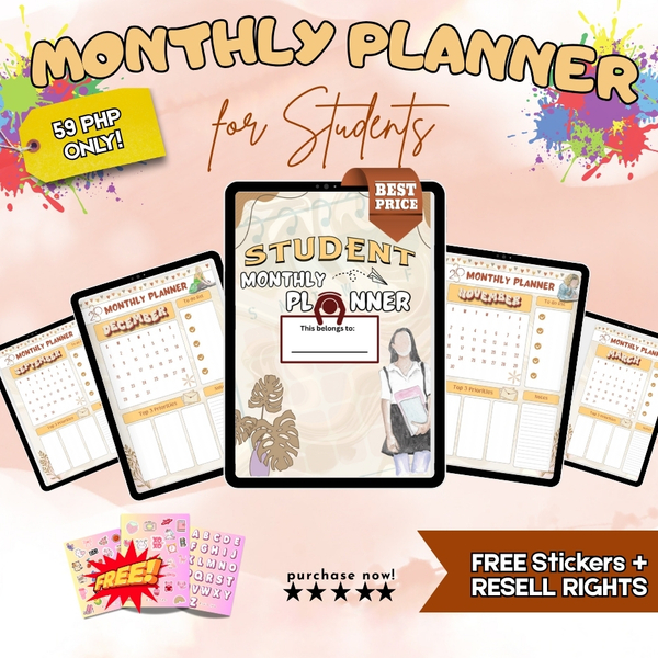 PRINTABLE MONTHLY PLANNER for STUDENT for 59 PESOS ONLY | AESTHETIC MONTHLY PLANNERS with FREE stickers and RESELL rights included